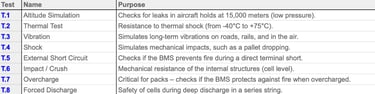 The UN 38.3 procedure consists of eight rigorous tests (T.1 - T.8) simulating the extreme conditions that can occur during global transport: